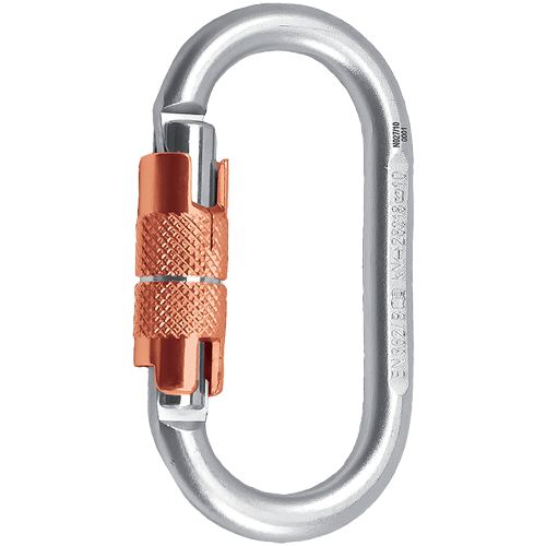 A trava do parafuso garante o travamento eficaz do mosquetão.