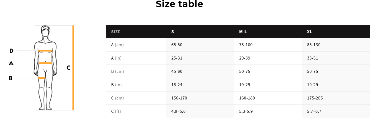 - alças de ombros e perneiras são ajustáveis independentemente