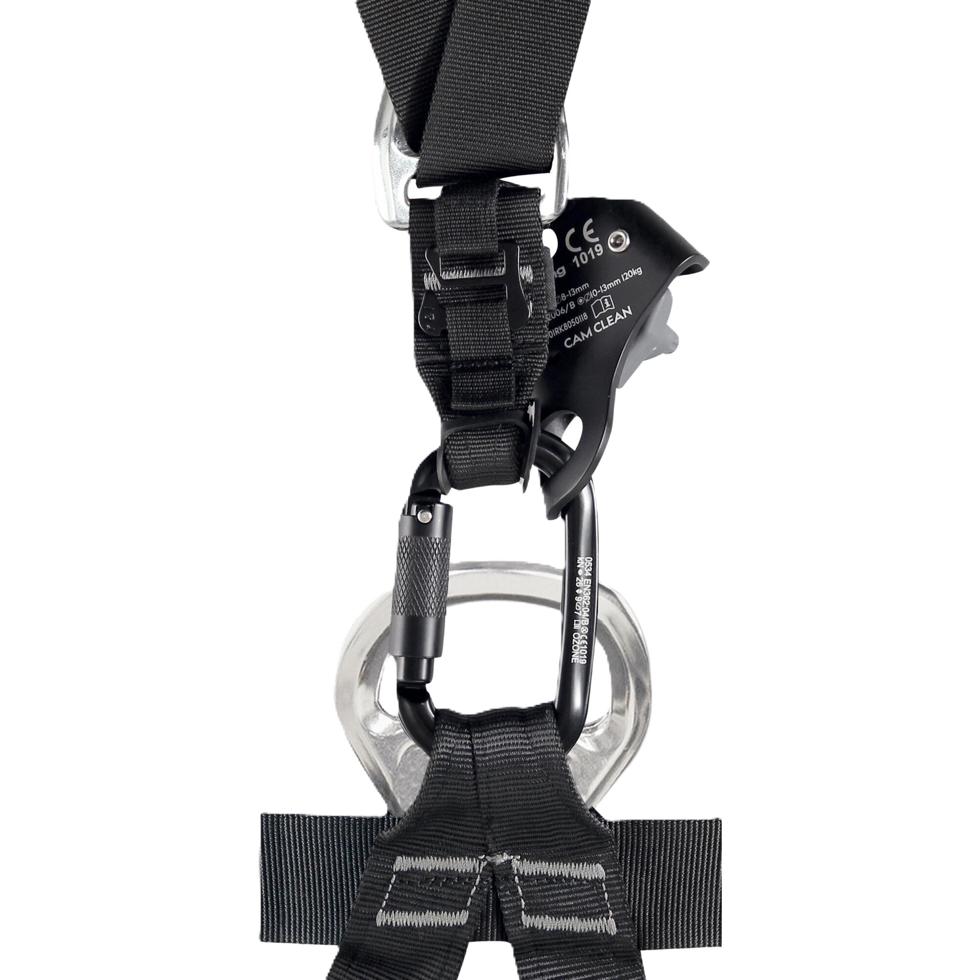 sistema de fixação inteligente do ascensor de peito com uma capa de plástico no mosquetão OXY aumentando a durabilidade da correia (funciona melhor com CAM CLEAN )