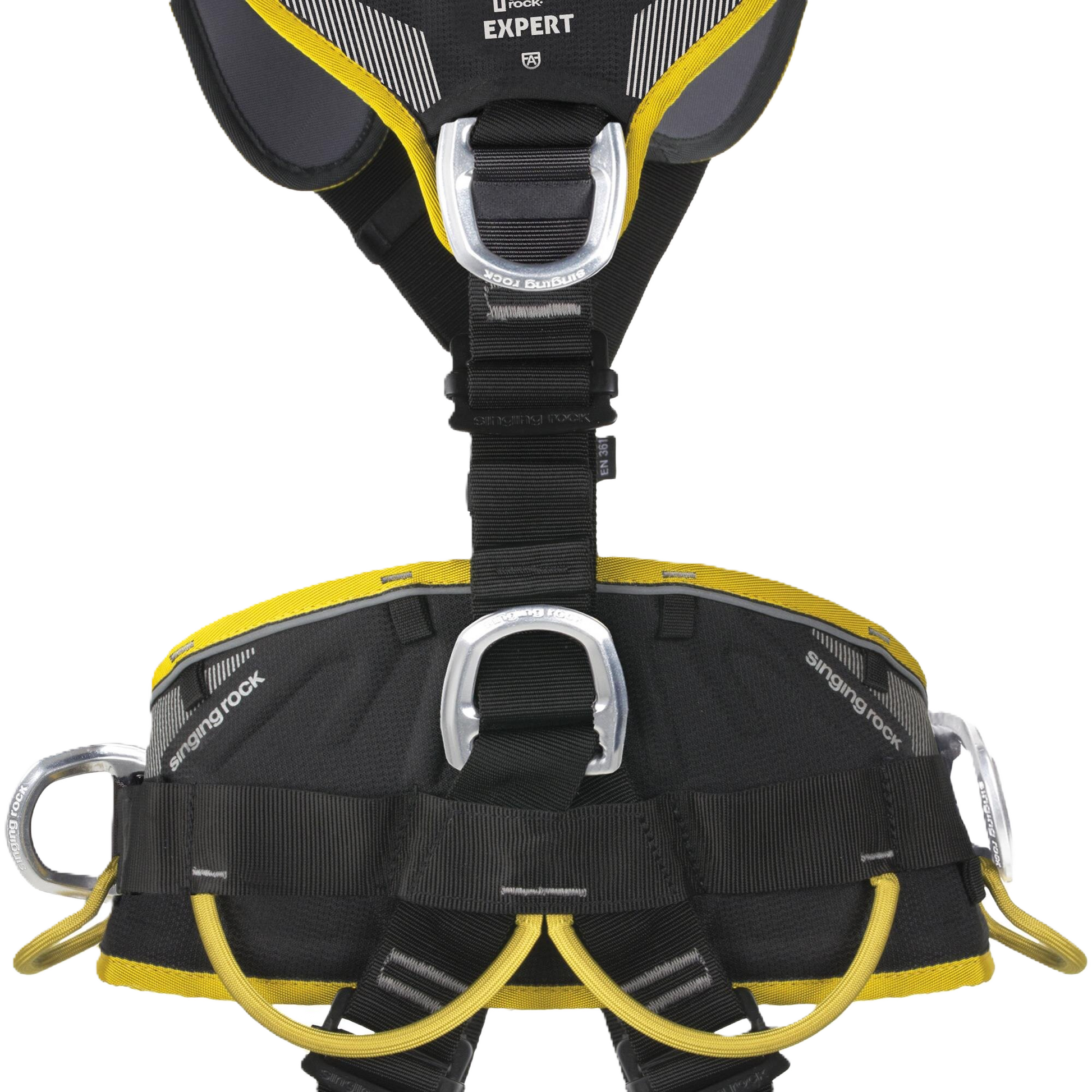 - pontos de fixação frontal e traseiro para proteção contra quedas de acordo com EN 361 marcados com marcação adicional “A“