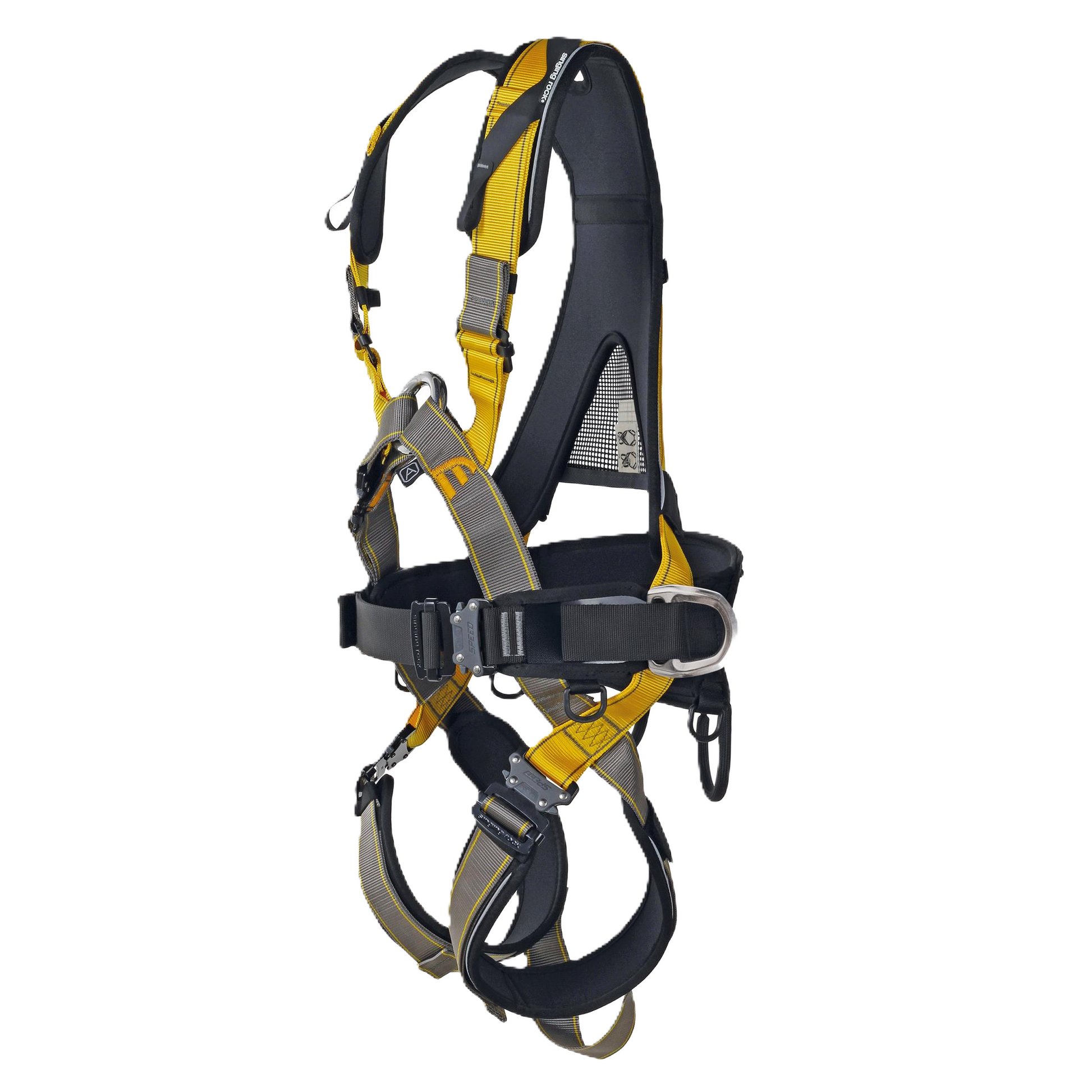 Arnês de proteção contra quedas de corpo inteiro com vários pontos de fixação, fivelas de velocidade e acolchoamento confortável. Adequado para situações de trabalho com máxima liberdade de movimento durante o posicionamento de trabalho. Desenvolvido em cooperação com empresas de energia.